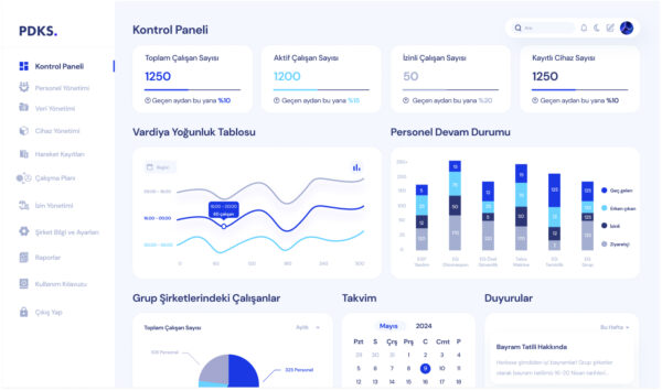 Personel Devam Kontrol Sistemi (PDKS), web ve mobil tabanlı bir uygulama olup çalışanlarınızın çalışma süreleri, fazla mesaileri, izinleri ve devamsızlık bilgilerini hesaplayarak, hakediş ve kesintilerini kaydeder ve yönetir.